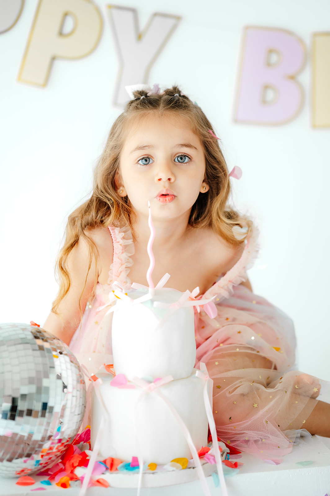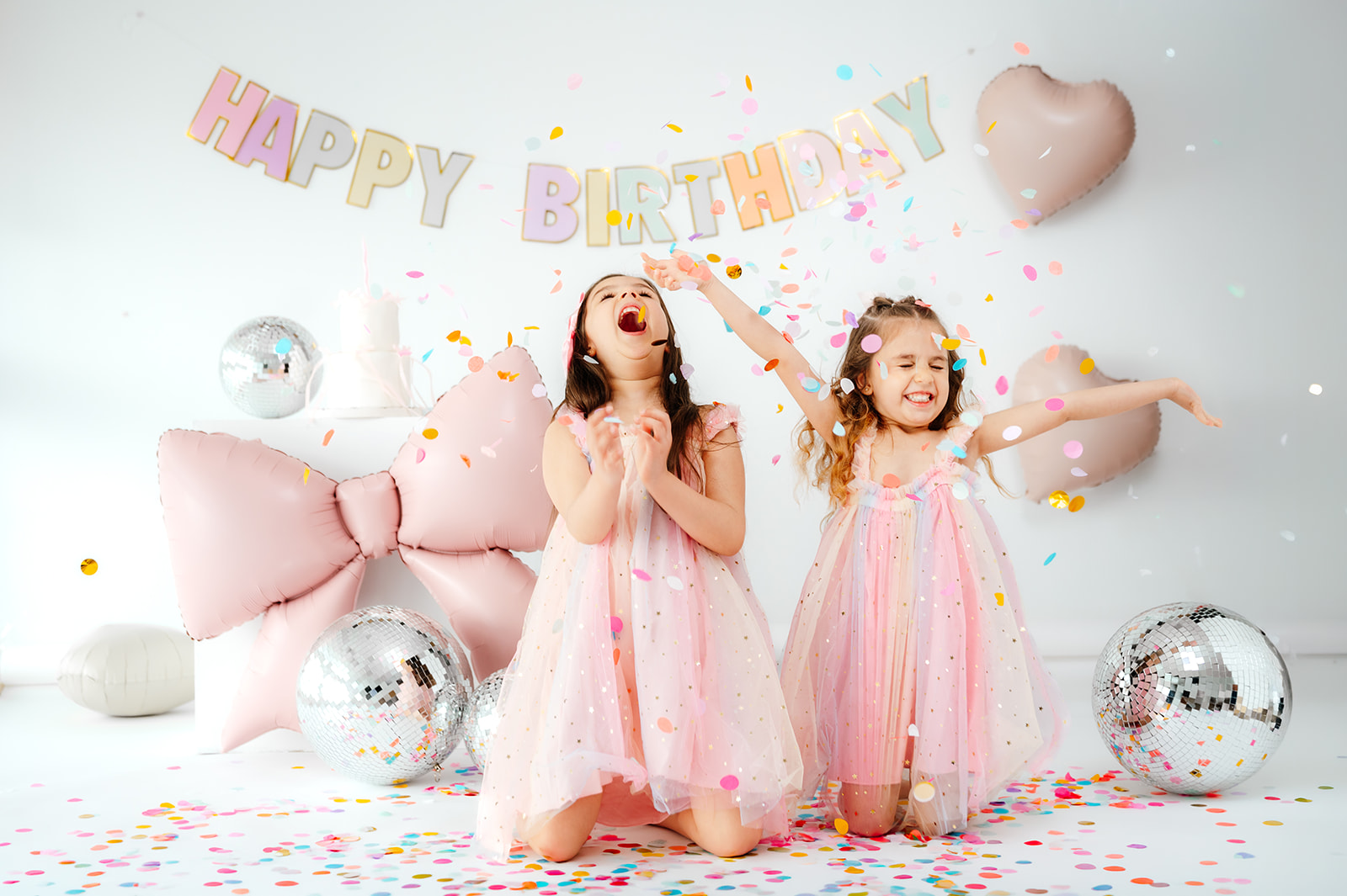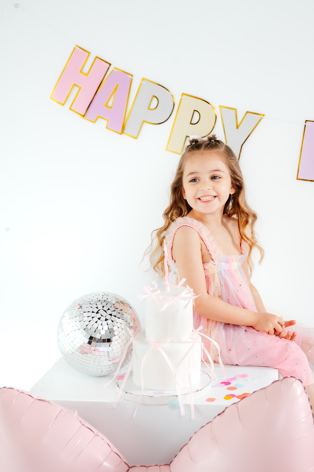 Esta sesión de cumpleaños infantil en estudio en Madrid fue muy especial porque Daniela vino acompañada de su hermana Sofía, y juntas llenaron el estudio de risas, confeti y momentos espontáneos.